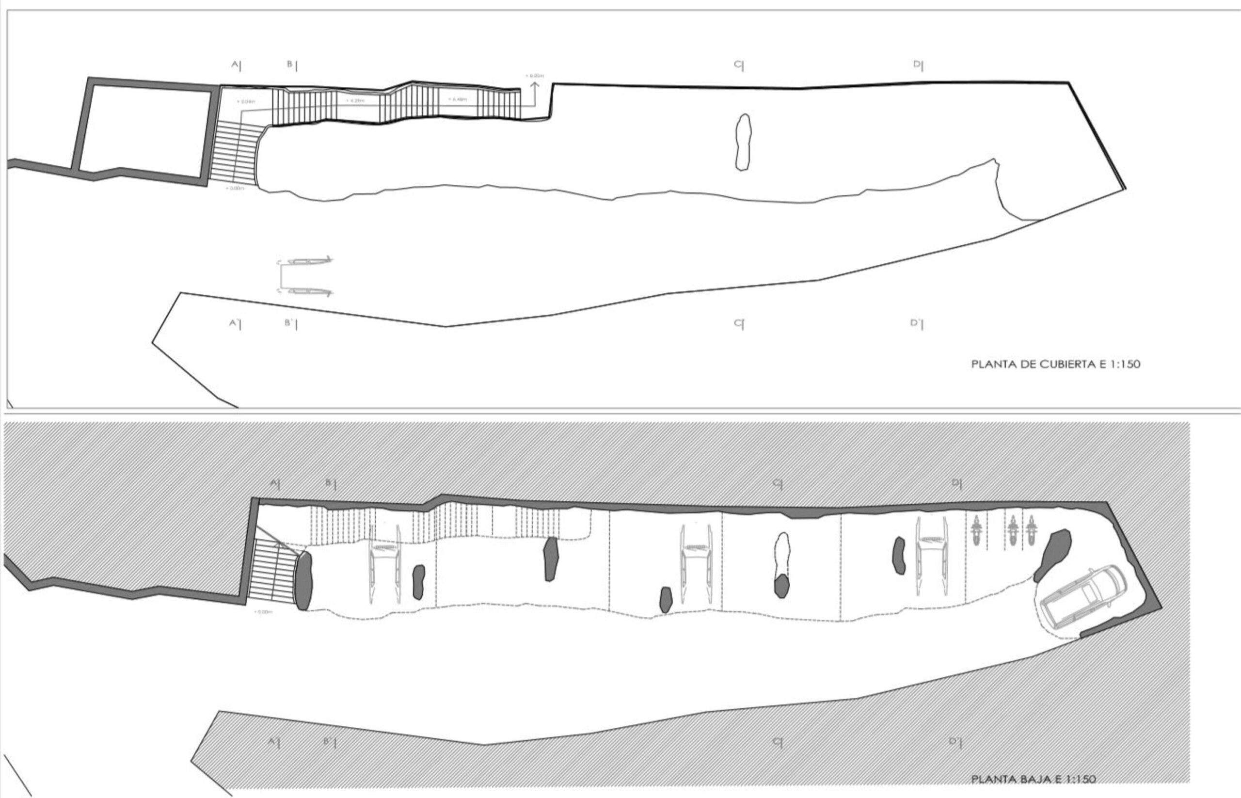 La estructura es fruto del modelado de un material base, el hormigón armado, que se somete a lo mismos procesos a los que se expone la piedra natural : sedimentación, erosión, meteorización, cristalización, compactación, metamorfismo, y se encofra utilizando las rocas y el terreno preexistentes, cuya huella se conserva así en la traza de los nuevos volúmenes.