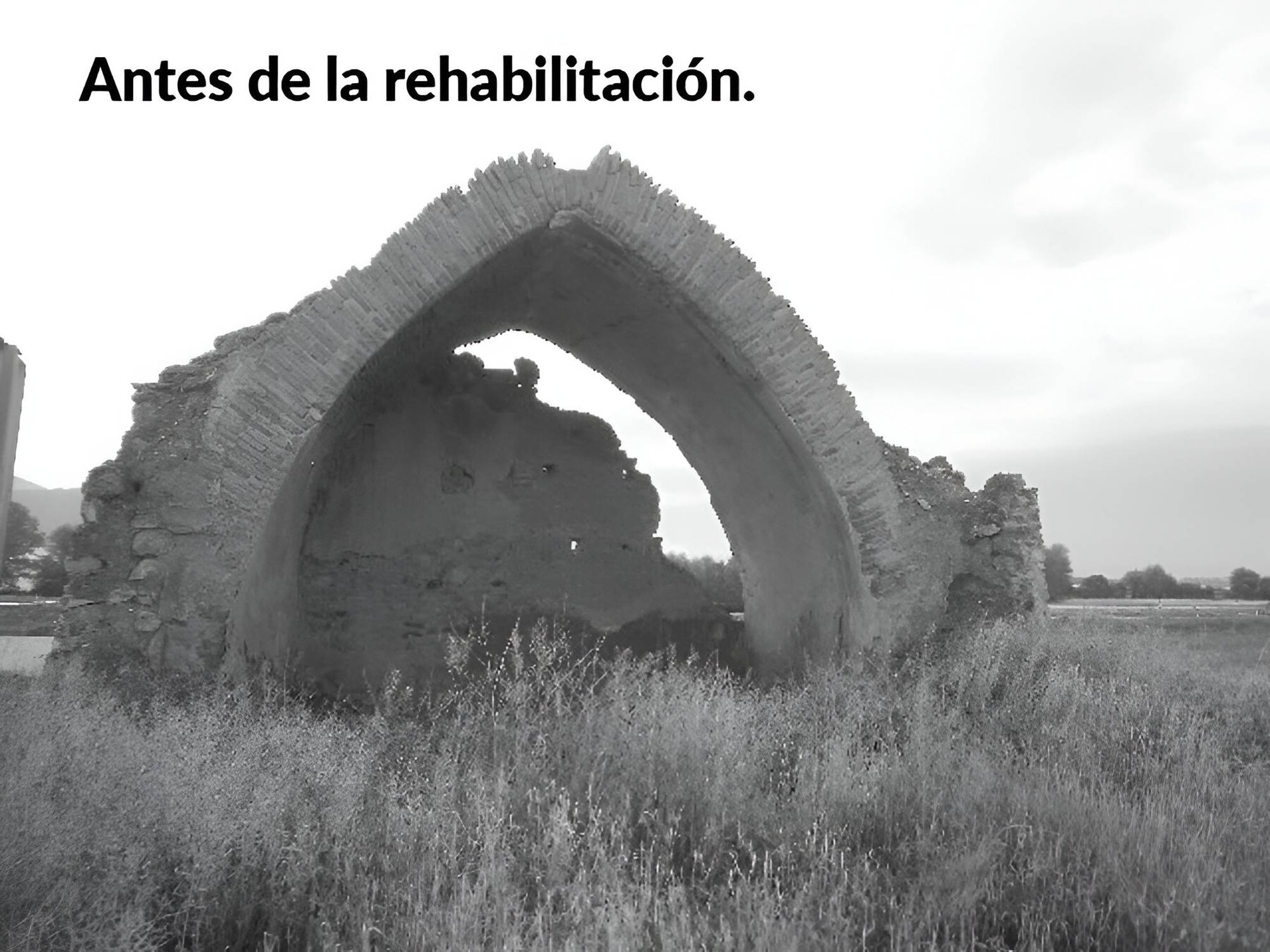 Lorente Arquitectos, proyecta la restauración de la cabecera, de esta modesta construcción, de planta rectangular, con fábricas de mampostería, ladrillo, tapial y bóveda de cañón apuntado sobre arcos fajones.