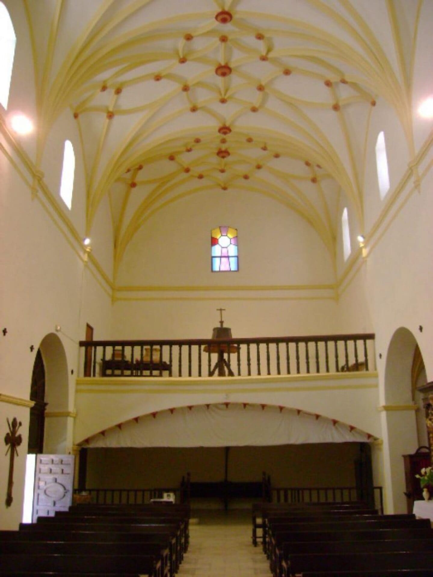 Interiormente la nave da paso a las profundas capillas entre los contrafuertes en 3 tramos. Tanto la nave como las capillas se cubren con bóveda de crucería estrellada, que arranca de ménsulas renacentistas.
