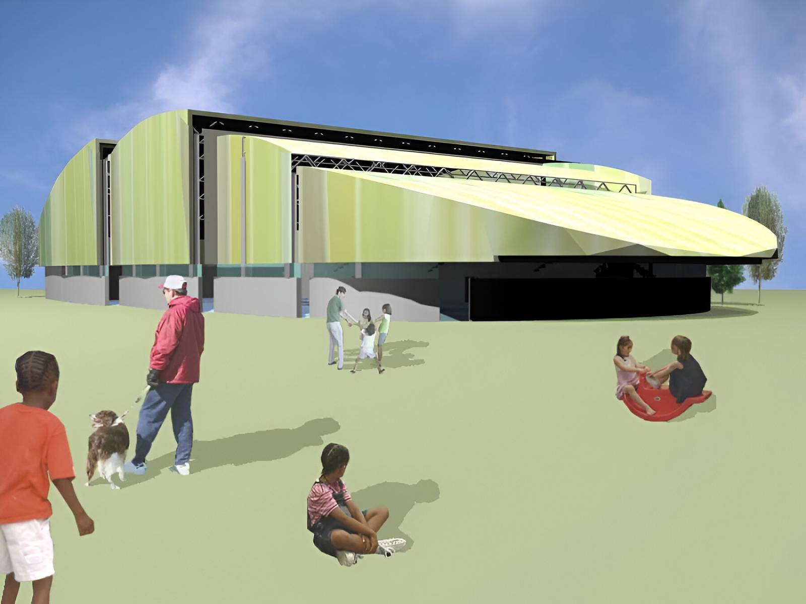 Frente al programa y al lugar se plantea un edificio abierto al paisaje y con la versatilidad suficiente para el desarrollo de diferentes actividades deportivas, lúdicas o recreativas (tanto al aire libre como a cubierto).