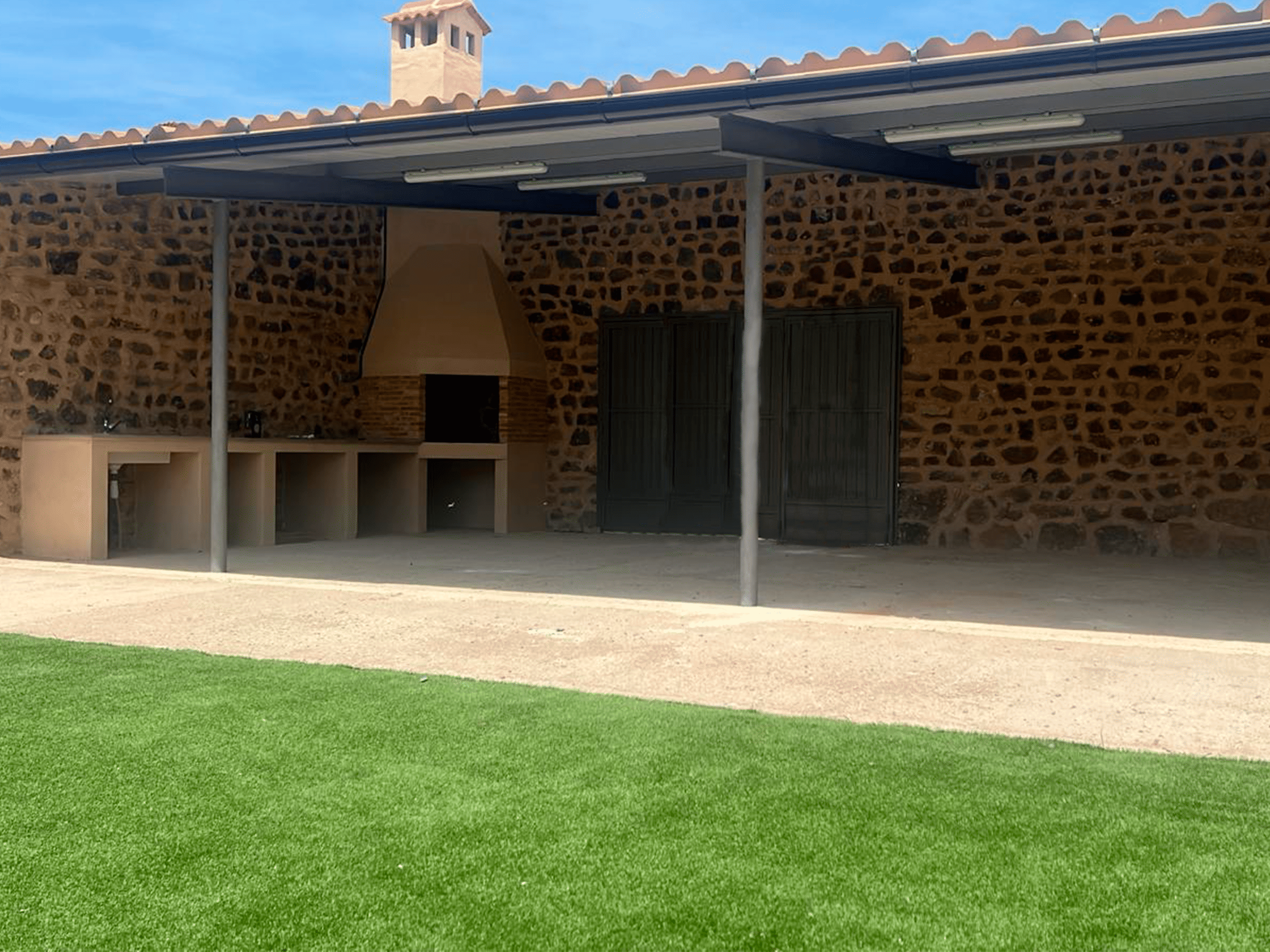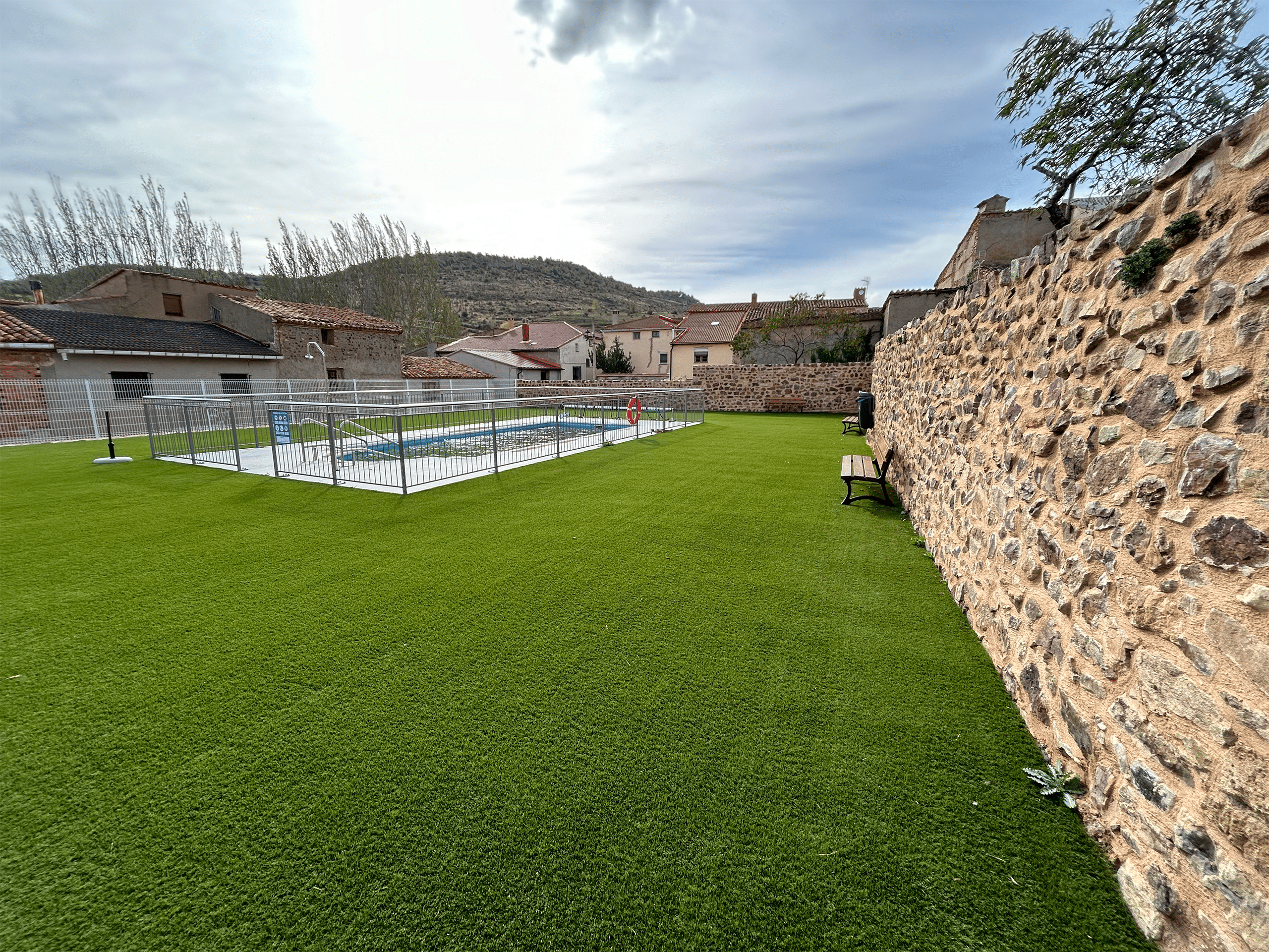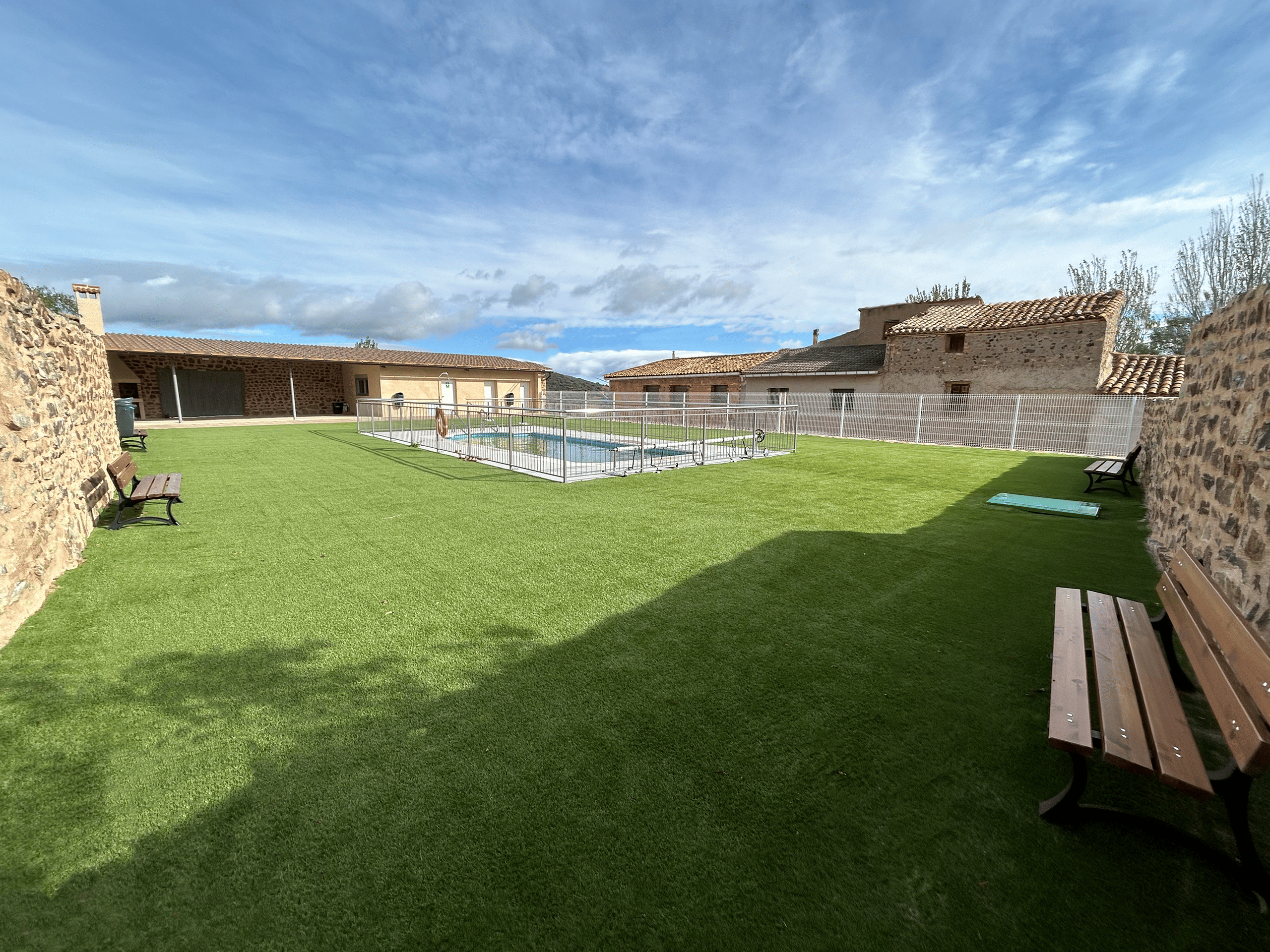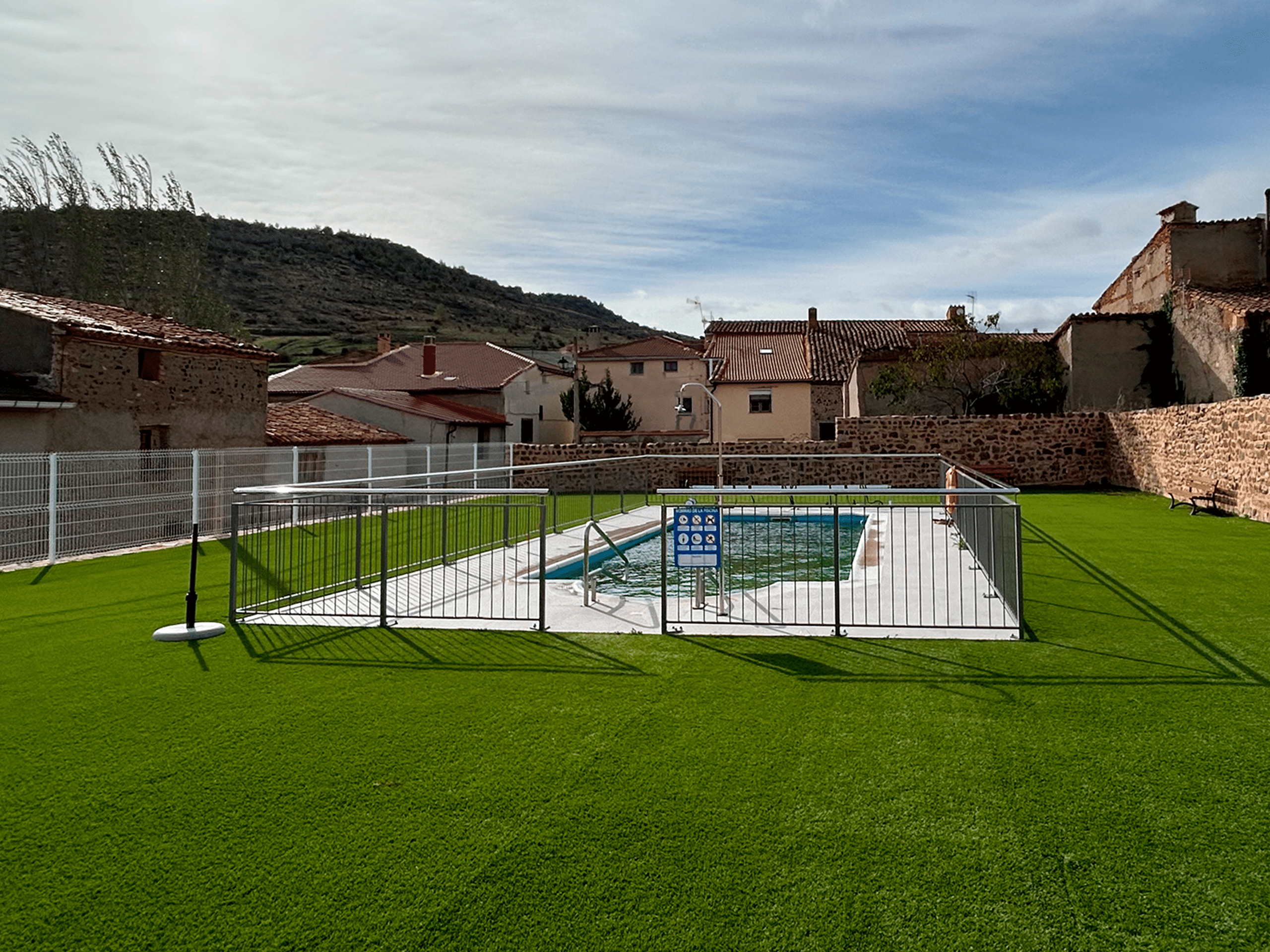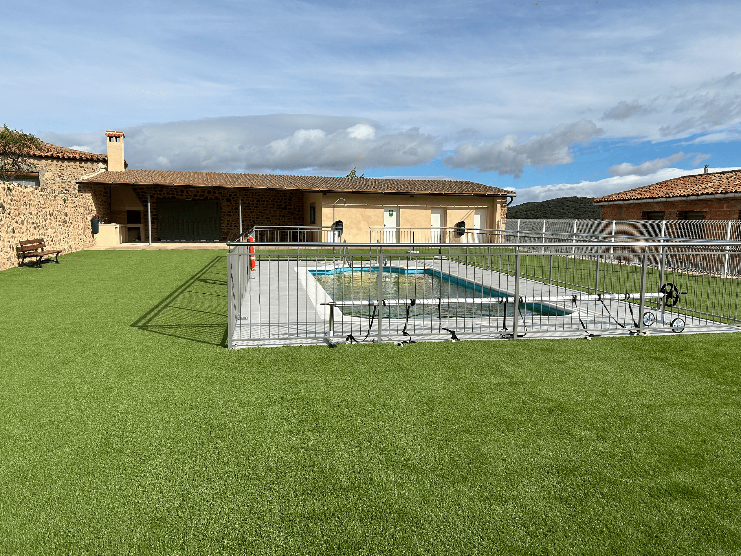 Con el fin de poder dotar este nuevo equipamiento, proyectamos las nuevas piscinas municipales que dispondrán de vestuarios, servicios, terraza cubierta con barbacoa y amplias zonas ajardinadas.