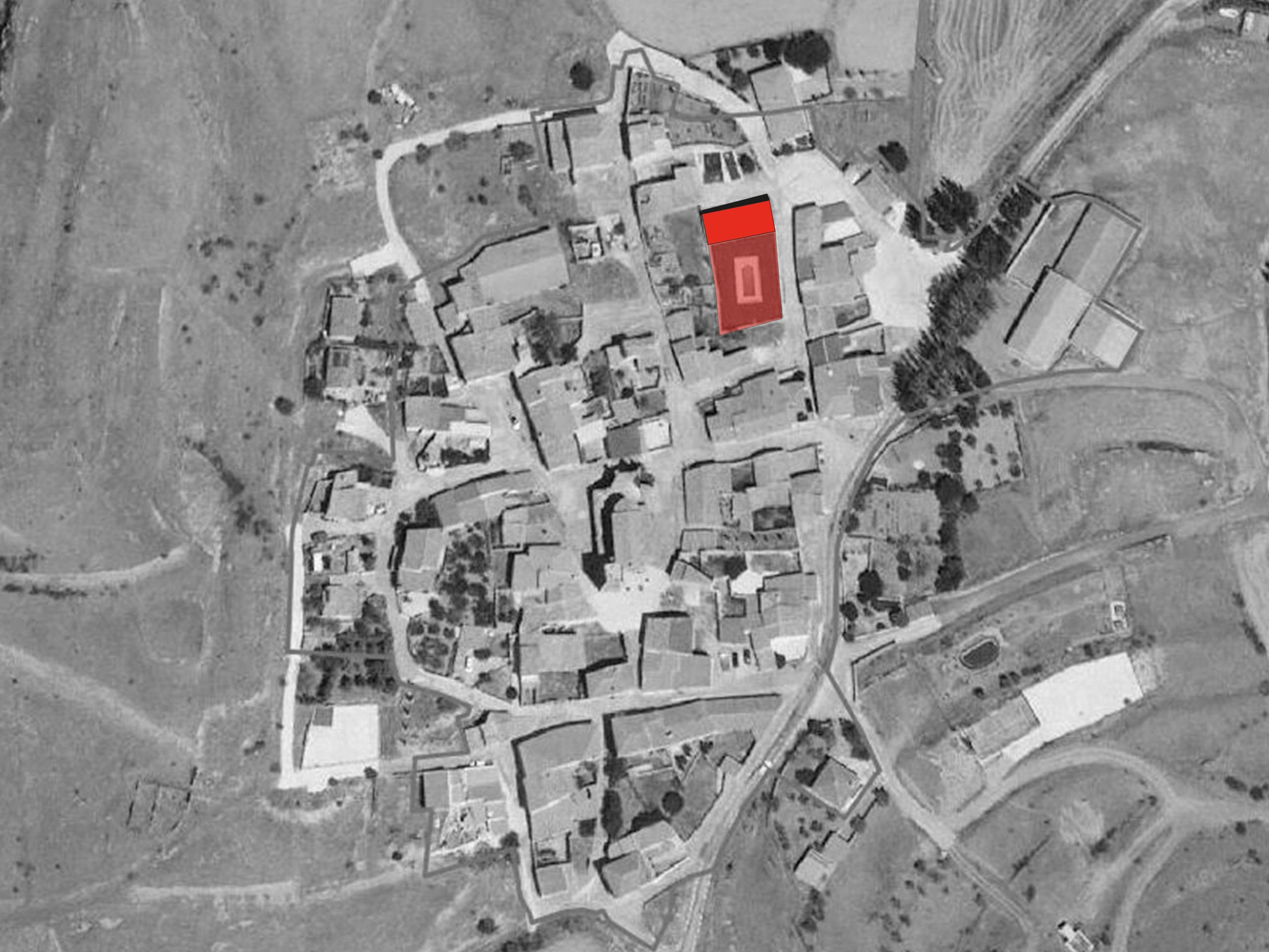 La localidad turolense de Bádenas presenta una implantación típica del ámbito rural Aragonés, con un pequeño núcleo entorno a la iglesia, el ayuntamiento y la plaza, y el resto disperso con pequeñas agrupaciones de viviendas generando calles.