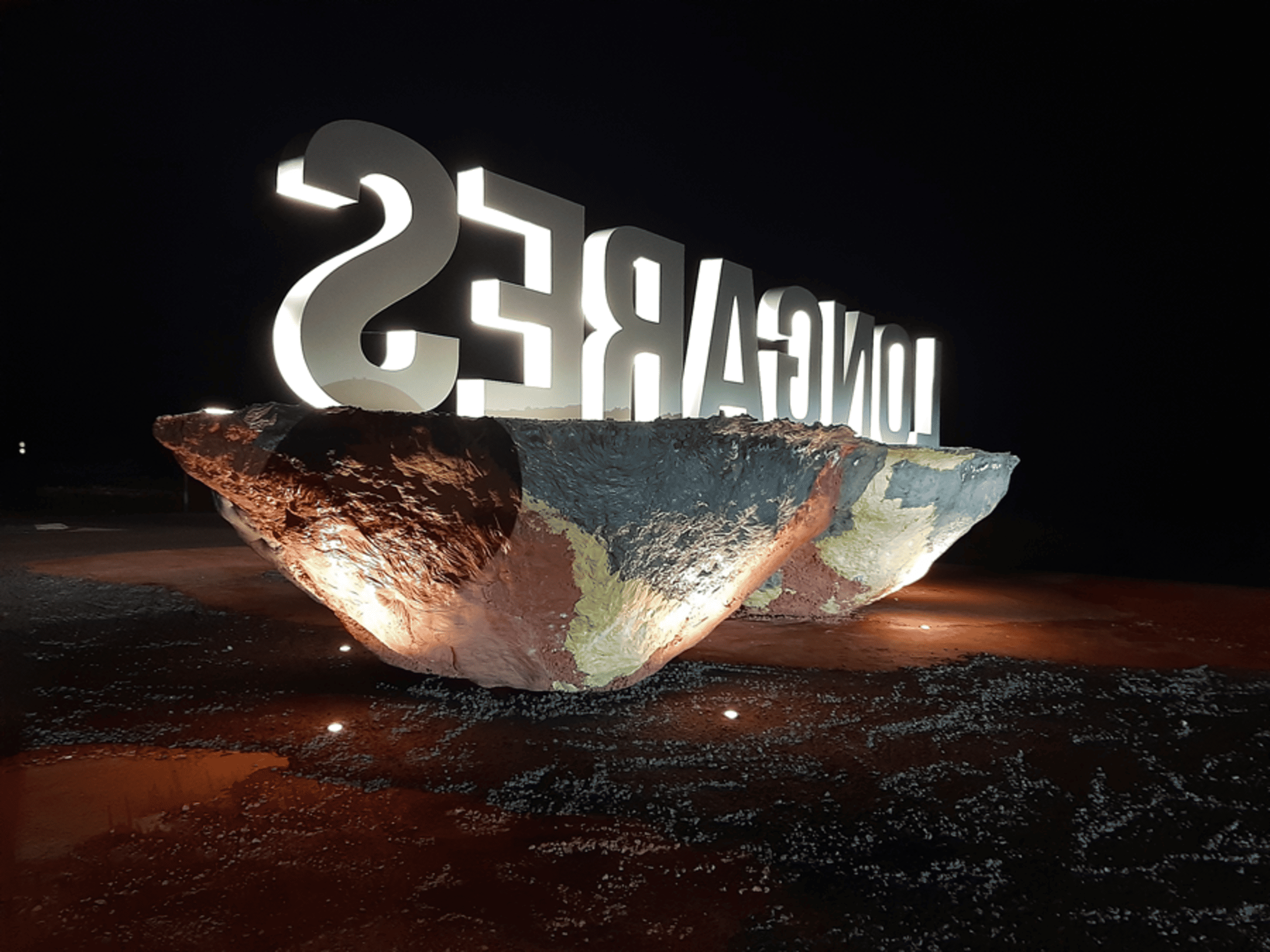 Lo planteamos con un doble objetivo, el dar a conocer tanto por el día como por la noche el pueblo a los viajeros que circulan por esta vía interurbana, y también potenciar la imagen de marca del Campo de Cariñena. El letrero lo apoyamos sobre dos “piedras”.